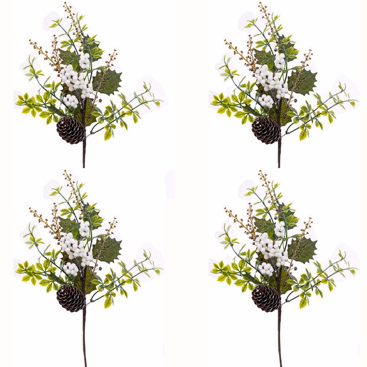 Com folhas verdes realistas, acabamento nevado e mini pinha charmosa, este enfeite