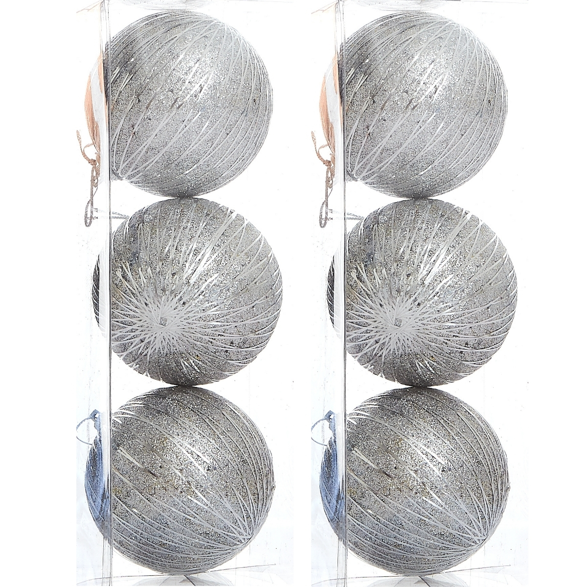 KIT 6 BOLA PRATA GLITTER ÁRVORE DE NATAL 8 CM PRATEADA LUXO