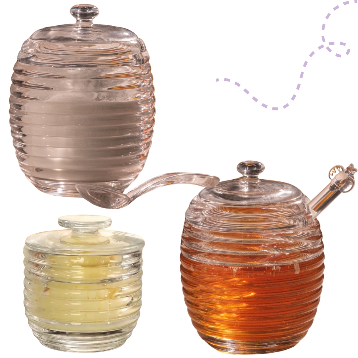 Descubra o encanto da mesa posta com o Kit Colmeia de Vidro: manteigueira francesa, meleira e açucareiro. Um trio perfeito que une sofisticação, funcionalidade e charme atemporal.