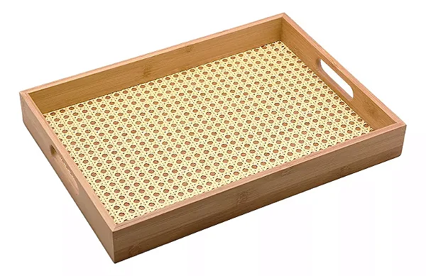 Bandeja Retangular Bambu Grande Decorativa Indiana Palhinha